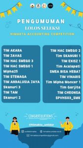 Pada beberapa Waktu Lalu dibulan Agustus 2022 ini siswa pada jurusan Akuntansi dan Keungan Lembaga mengikuti Himakta Accounting Competition yang dilaksanakan secara daring di Sekolah Masing-masing Alhamdulillah Siswa atas nama :
